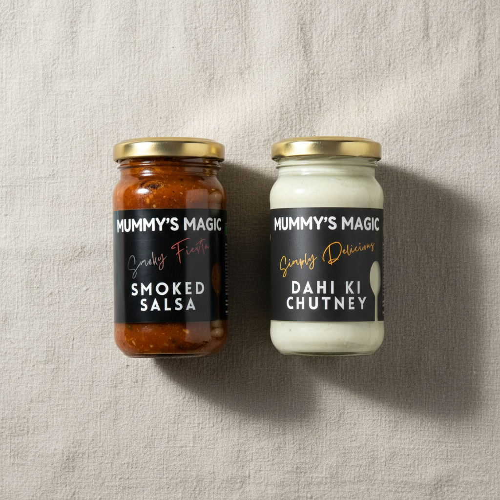 The Everyday Comfort Combo brings together two of Mummy's Magic's most versatile, feel-good jars- the cooling creaminess of Dahi Ki Chutney and the slow, smoky warmth of Smoked Salsa. One soothes, the other excites. Together, they transform simple meals into everyday moments of delicious comfort.