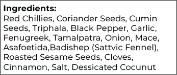 कोल्हापुर में एक प्रामाणिक पीढ़ियों पुरानी, पारिवारिक रेसिपी से बनाया गया हमारा कोल्हापुरी मसाला 17 अलग-अलग जड़ी-बूटियों और मसालों को सटीक गुप्त अनुपात में मिलाता है ताकि आपको असली कोल्हापुरी स्वाद मिले। इसे अपनी करी और स्टू में इस्तेमाल करें, मीट और मछली को मैरीनेट करें या दाल-चावल के ऊपर गन-पाउडर के रूप में इस्तेमाल करें - आपको हर निवाले में महाराष्ट्र का असली "स्वाद" महसूस होगा।