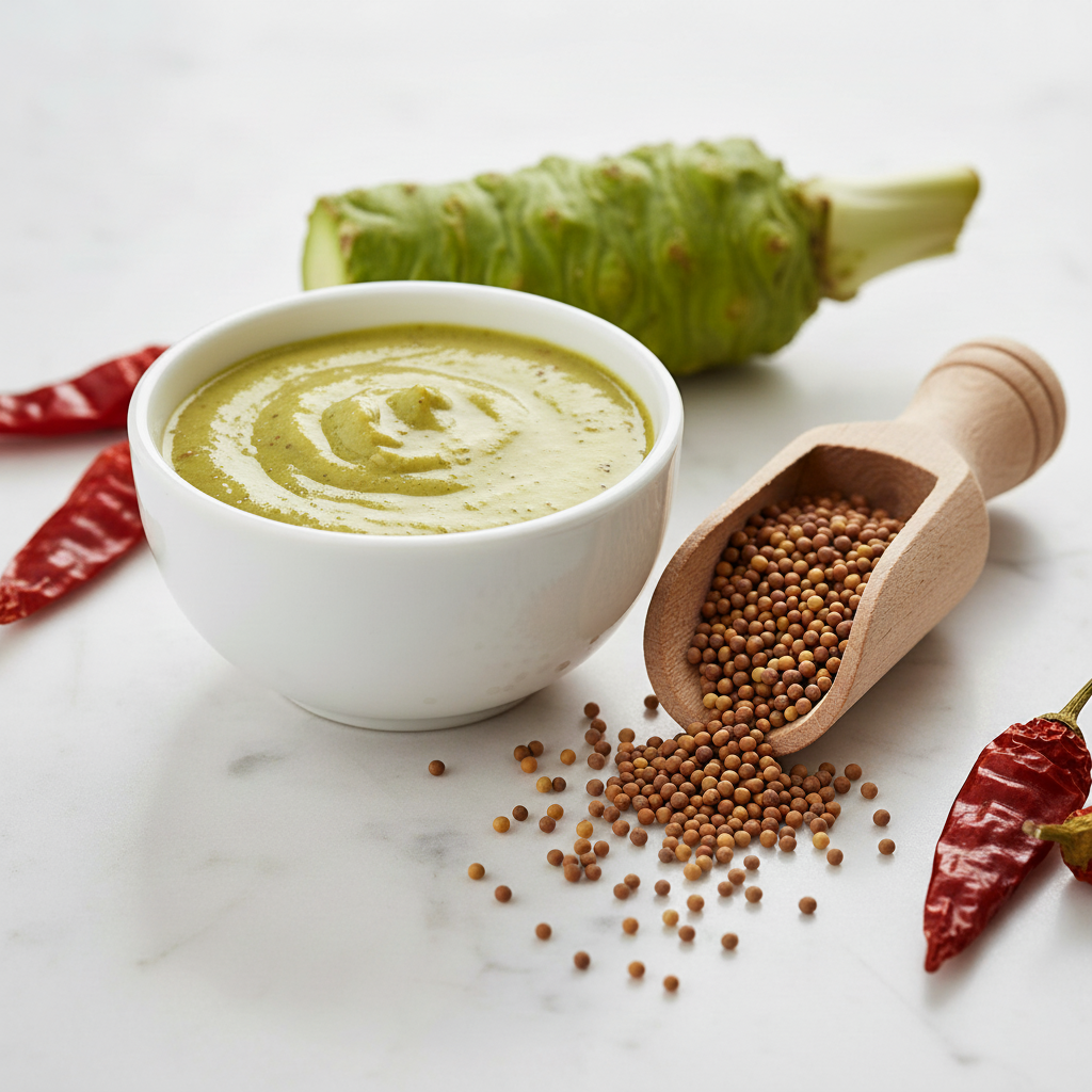 हमारी नवीनतम रचना, वसाबी मस्टर्ड के साथ अपने स्वाद के अनुभव को बढ़ाएँ। सटीकता के साथ तैयार किया गया यह अनूठा मिश्रण जापानी वसाबी की बोल्डनेस, भारतीय सरसों की समृद्धि और भूत जोलोकिया (घोस्ट पेपर) मिर्च के तीखे स्वाद को एक साथ लाता है।
